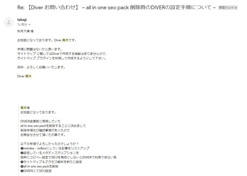 一応SEOに関わる部分だったので、DIVER開発者の高木さんに確認しましたところ、「問題なし!」と言う評価を頂きました。
